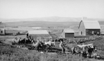 Description: Distant view of farm near Bozeman, Montana. Mount Ellis to the right of center background. 11x14 in. print, Vintage 11x14 in. glass negative